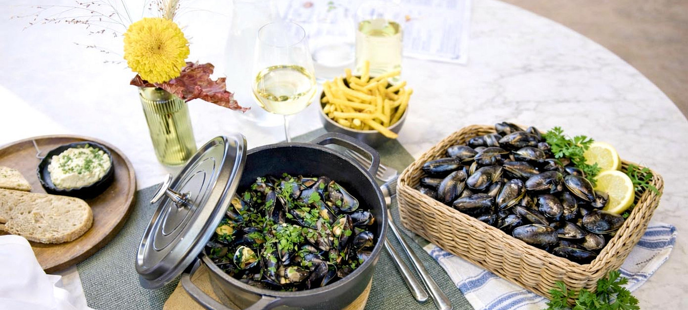 Nach dem gelungenen Auftakt mit dem Côte de Boeuf folgt nun Moules & Frites à discrétion – begleitet von knusprigen Frites, Knoblibrot und hausgemachter Speck-Mayonnaise.